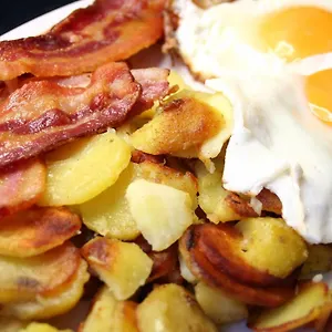 A made-to-order breakfast is delivered in the restaurant. The restaurant amical lies next door to this Traverse City hotel.