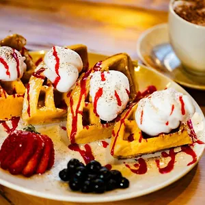 The Marriott Old City Philadelphia serves American breakfast in the morning. At Society Commons restaurant guests can try American cuisine. Guests can also try nibbles and seafood at the onsite bar. There is a restaurant serving American food 5 minutes' walk away.