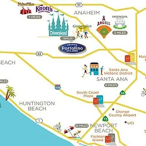 Providing guests with a cash machine and a lift, the 3-star Portofino Inn And Suites Anaheim Hotel is located near the entertainment district of Anaheim, merely 8 minutes' walk from Anaheim Convention Center. This Anaheim hotel in the Anaheim Resort district of Anaheim features a swimming pool and a fitness room.