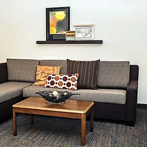 The Residence Inn Louisville Airport has 120 rooms, some of them comprise a dining place and a kitchenette, and have self-catering options such as coffee/tea making facilities. They offer such nice touches as a stone fireplace, along with a sofa and a writing desk, and tile flooring. The units also look over the street. Looking onto the street, the house features kitchenette with a microwave oven, a fridge, and kitchenware.