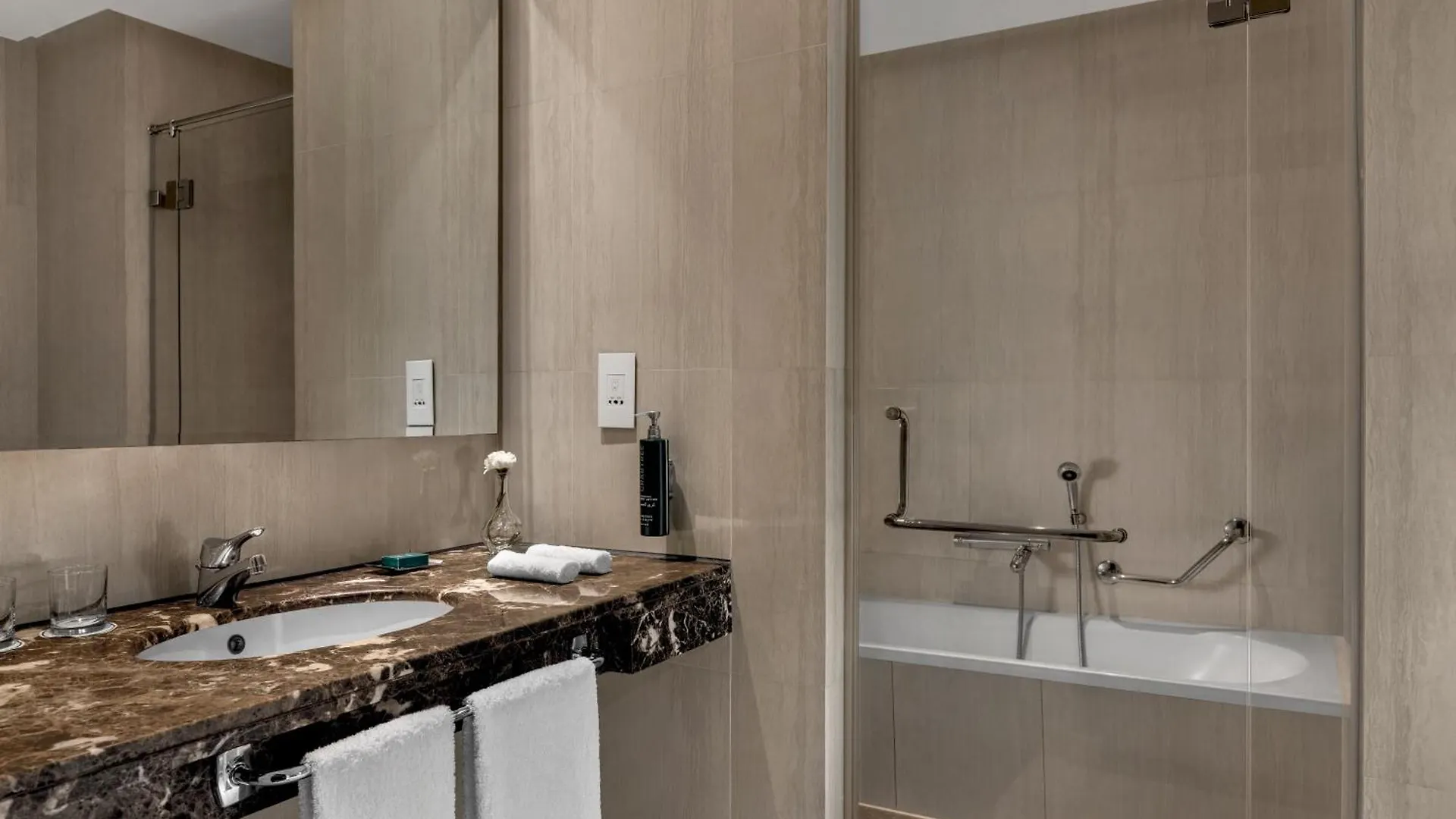 The hotel has a swimming pool and a fitness room. The accommodation includes a business centre equipped with a xerox and complimentary wireless internet access.
