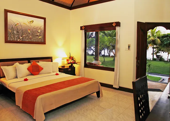 Offering a sunbathing terrace, spa therapy, and a patio, the 5-star Nirwana Beach & Resort Candi Dasa is conveniently located, nearly a 25-minute walk from Bale Agung Tenganan Dauh Tukad. Featuring 46 rooms with views of the garden, this Candi Dasa resort is a short way from Bali Bubbles Dive Center.