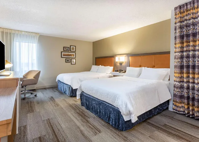 The comfortable 3-star Hampton Inn & Suites Cedar Rapids - North, located within a 10-minute drive of the 26 - acre Brucemore Park, offers a heated swimming pool and WiFi throughout the property. This Cedar Rapids inn lies in a business area, a 15-minute ride from such cultural sights as Ushers Ferry Historic Village.