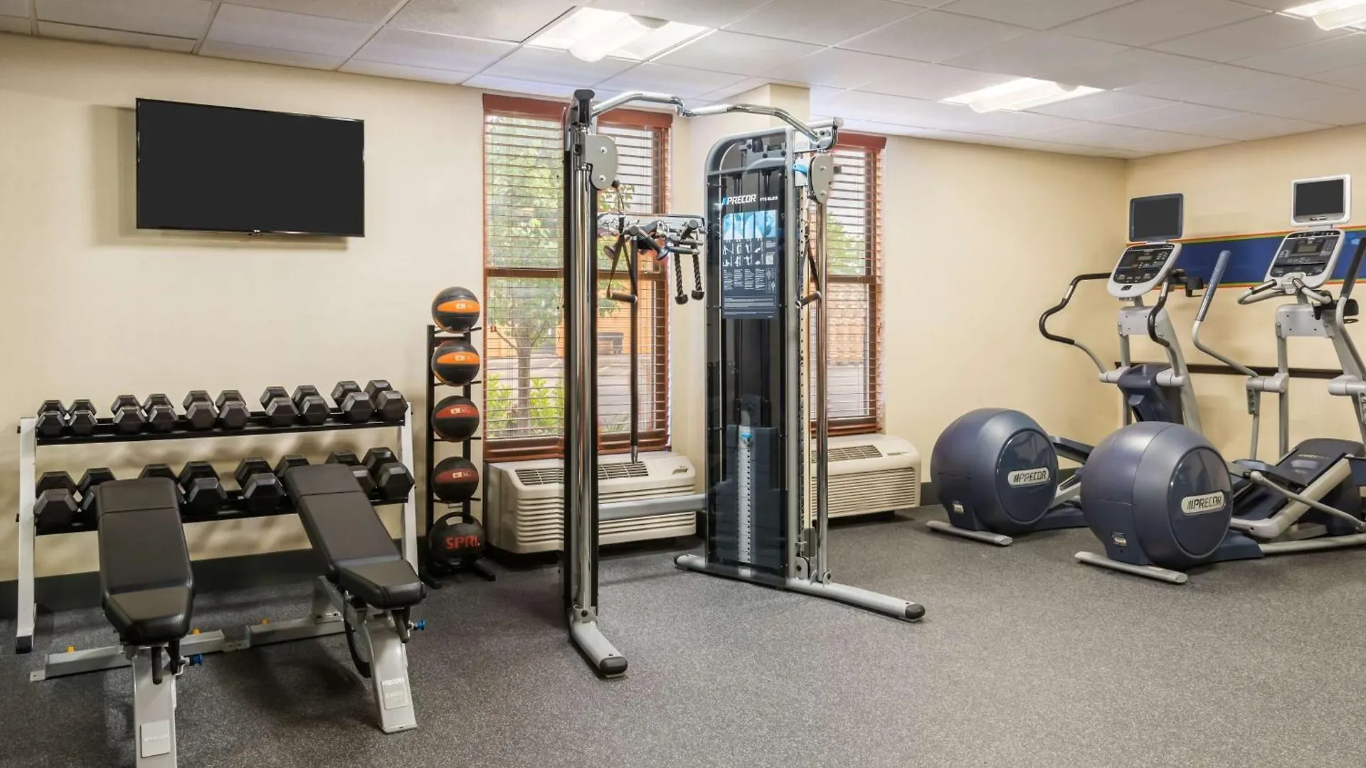 Guests can work out in a fitness area.