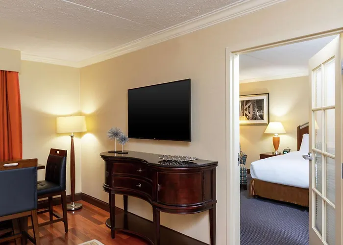 Featuring a cash machine and a lift, the 3-star Doubletree By Hilton Hotel Grand Rapids Airport stands 25 minutes on foot from Forest Hills Fine Arts Center. Offering a lounge bar, the hotel also has a heated pool beckoning guests to dive in.