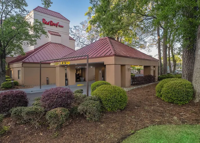 The affordable Red Roof Inn Myrtle Beach Hotel - Market Common is set a 15-minute drive from the mini-Disney-like Broadway at the Beach Outdoor Mall and within 10 minutes' drive of the seaside Family Kingdom Amusement Park. This 2-star family-friendly inn also offers WiFi throughout the property.