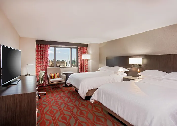 Sheraton Springfield Monarch Place Hotel is a 3-star venue a mere 1.3 km from the 48000-square-foot museum "Basketball Hall of Fame". Be sure to visit MassMutual Center Arena reachable on foot as well as enjoy an indoor swimming pool or sauna facilities, an indoor pool, and locker rooms.