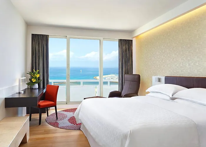 Featuring a currency exchange and a cash machine, the 5-star Sheraton Grand Tel Aviv hotel is 5 minutes' walk from Gordon Beach. One will enjoy a poolside bar or fitness classes, spa therapy, and a shared lounge, while this sophisticated hotel also boasts great setting within easy reach of Frishman Beach.