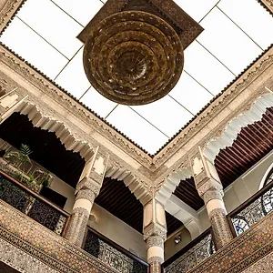 Located in Fes El Bali with narrow, car-free streets and ornamented entryways like Bab Guissa and the Blue Gate, the luxury property is approximately 20 minutes' walk from the places to discover the history of the area, such as The royal palace in Fez. Medersa Bouanania Seminary is a popular education place to visit only minutes from the Riad Fes - Relais & Chateaux.