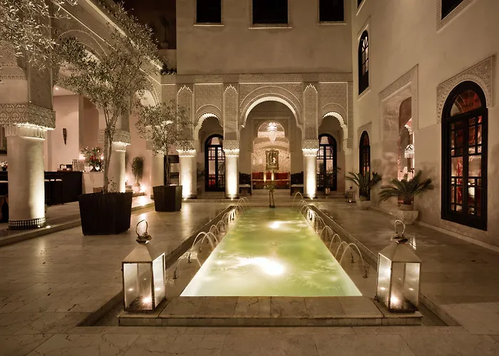 Offering a Turkish steam bath, a treatment room, and a solarium, the 5-star Riad Fes - Relais & Chateaux is nestled 5 minutes' walk from C.C.I.S Fes and within 5 minutes' walk of Batha. This Fes riad features an outdoor pool and a Moroccan restaurant, boasting a location next to the ornate Bab Bou Jeloud City Gate.