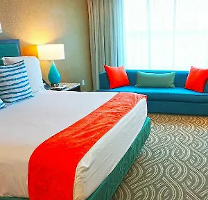 Guests of the River Spirit Casino Resort can enjoy a cooked-to-order breakfast. You can also visit a pool bar furnished with swim-up chairs, and serving refreshing drinks. The restaurant Visions Buffet is nearly 6 minutes' walk away.