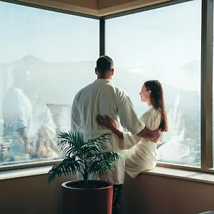 You can stay in one of the 280 soundproof rooms featuring free Wi-Fi and a flat-screen TV with satellite channels along with a mini-fridge-bar and a coffeemaker. They are outfitted with spacious decor. The marbled bathrooms are appointed with a hot tub and a sauna along with hair dryers and dressing gowns. Guests can also enjoy mountain views.