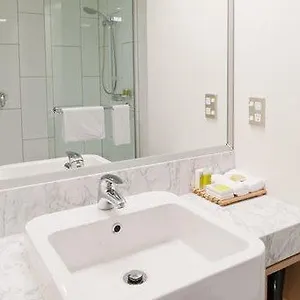 The private bathrooms feature a hairdryer and guest toiletries.