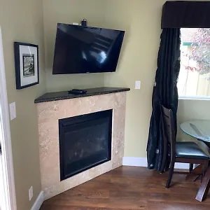 Overlooking the garden, some rooms at the Sea Breeze Inn - Pacific Grove feature a stone fireplace furnished with a sofa set. Guests can make use of coffee and tea making facilities, and relax with cable programming and a DVD player. The private bathrooms have a bathtub, and comforts such as hairdryers and complimentary toiletries.