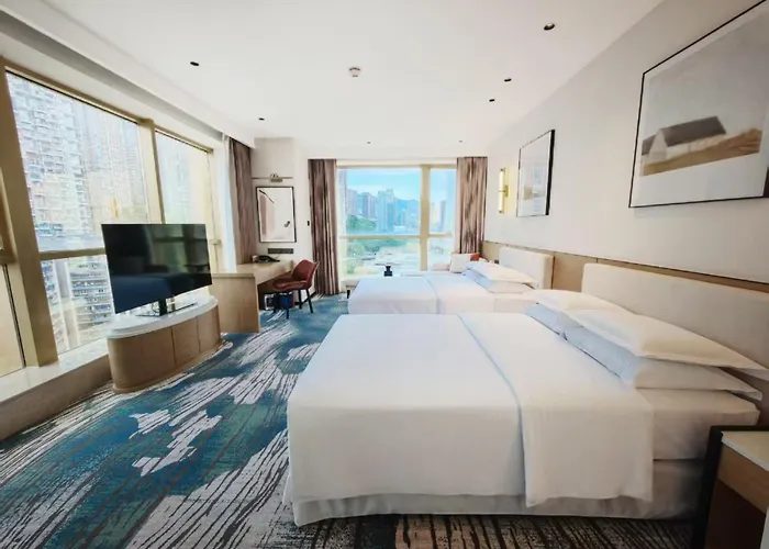 Situated just steps from a bar and a park, and 5 minutes by car from Hongya Cave Dawan Tea, the 5-star Sheraton Chongqing Hotel includes 371 rooms about a 20-minute stroll from The Ropeway Of Yangtze River. Guests of the 49-story hotel in Chongqing are invited to take a dip in a swimming pool and relax using a Jacuzzi, sauna facilities and an indoor pool.