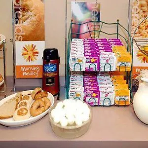 The Sleep Inn South offers buffet breakfast with cinnamon rolls, bagels, and yogurts.