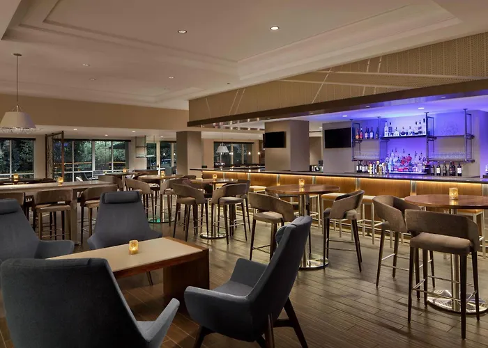This comfortable hotel invites guests to the snack bar to relax with a drink.