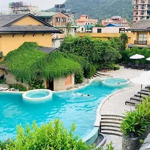 The 5-star Temple Tree Resort & Spa Pokhara, located about a 10-minute ride from the scenic waterfall "Davis Falls", features massage therapy and entertainment activities. Set a mere 0.8 km from Lake Side, the traditional-style hotel offers a treatment room, a Jacuzzi and sauna facilities on site and great access to sacred landmarks like the two - story pagoda Tal Barahi Temple, nearly a 25-minute walk away.