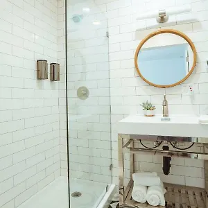 Guests can use a walk-in shower and a sink together with a hairdryer and guest toiletries.