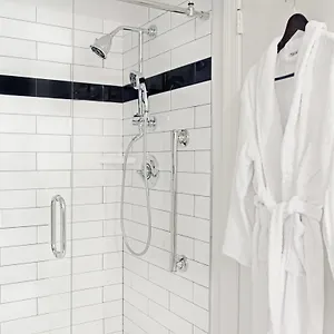 The separate bathrooms feature hair dryers and guest toiletries.