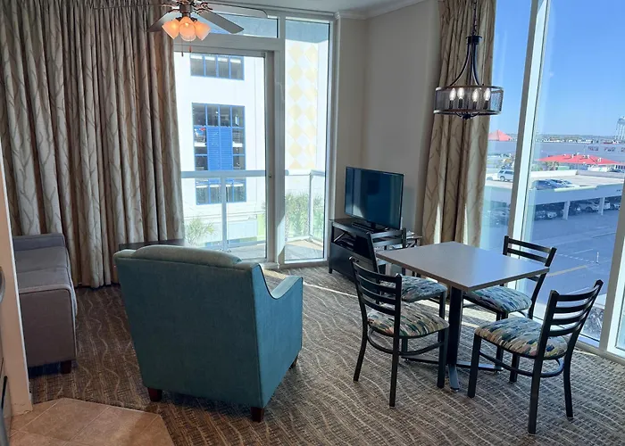 Ironing facilities and air conditioner, along with coffee and tea making facilities, provide in-room convenience at this Myrtle Beach property. Guests can use a shower and a Jacuzzi together with a hair dryer and complimentary toiletries. A tub, a separate toilet and a shower are available in private bathrooms.