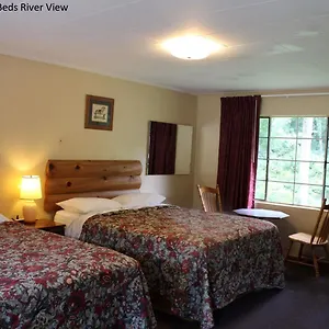 The rooms at Two Rivers Lodge have a flat-screen TV with satellite channels, along with coffee/tea making machines for your convenience. A tub and a shower, together with such comforts as a drier and towels are also provided. These units offer views of the mountain.