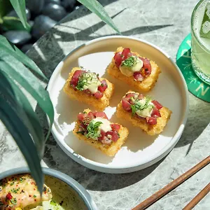 Somerset is a restaurant at the Viceroy, which serves American cuisine. A rooftop bar is available on the 18th floor. There is a brew pub serving American food approximately 5 minutes' walk away.