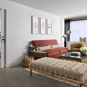 Some of these comfortable rooms have views of the city.
