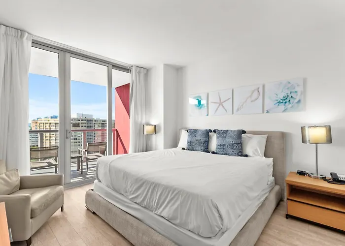 Water View Building With Pool - 5-Min Walk To The Beach Hallandale Beach is a 10-minute ride from the Old-timey Holland Waterfront Park and features a night club and a golf course. Boasting an outdoor swimming pool, this Hallandale Beach aparthotel is nestled about a 25-minute walk from natural attractions like the Private palm-fringed Loggia Beach Beach Park.