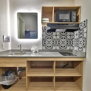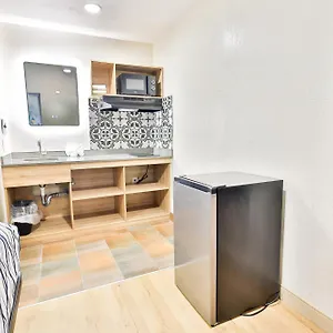 The air-conditioned rooms are fitted with a TV set, and furnished with a work desk. They have kitchen facilities, such as a microwave and a refrigerator.