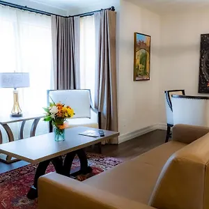 Some rooms offer views of the city.